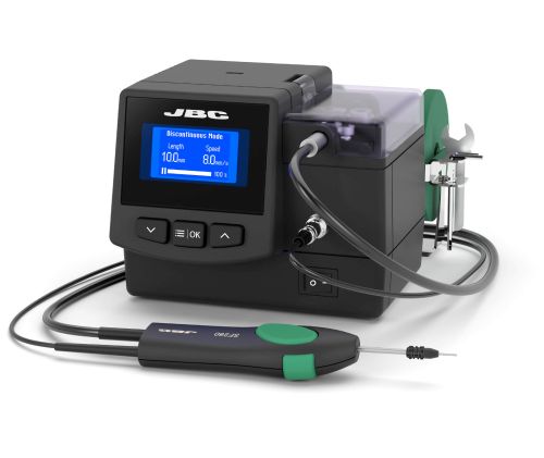 The JBC SF-210VB Automatic Solder-Wire Feeder allows solder wire to be fed automatically from any position, improving consistency and efficiency during soldering operations.